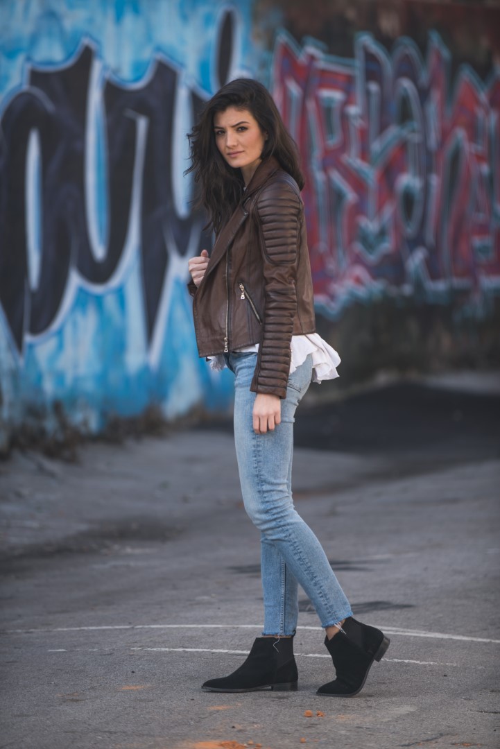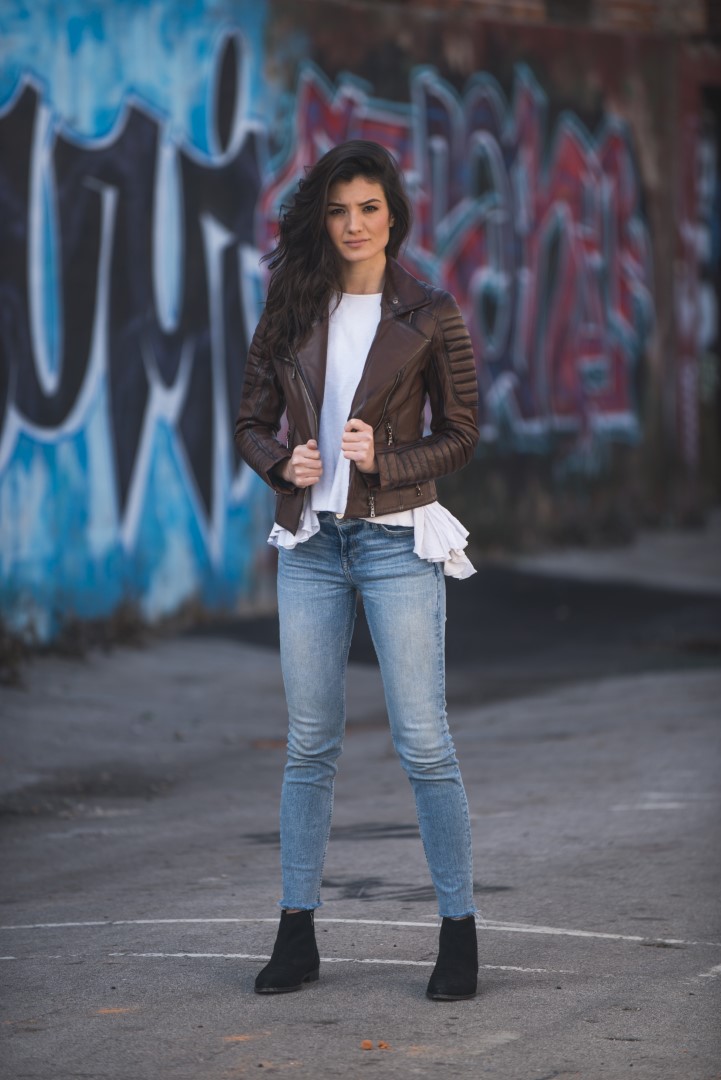Kožna jakna toplih zemljanih nijansi. Pristaje baš uz sve, od dnevnih casual kombinacija do klasičnih poslovnih outfita. Jakna koju svi trebaju imati u svojoj kolekciji.